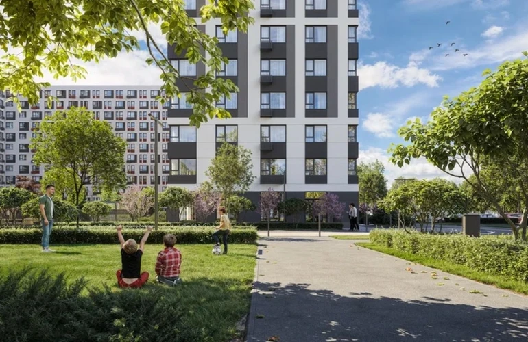 На территории запроектированы три детских сада и школа на 1 500 учеников, а также семь гектаров озеленённых зон с прогулочными аллеями. Для жителей — площадки для спорта и игр, зоны отдыха, места для выгула собак и гостевые парковки. Всё необходимое — в шаговой доступности: магазины, аптеки и сервисы в первых этажах корпусов